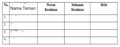 Bertanyalah pada teman di kelasmu tentang kesukaan mereka, lalu tuliskan ke dalam tabel seperti berikut !